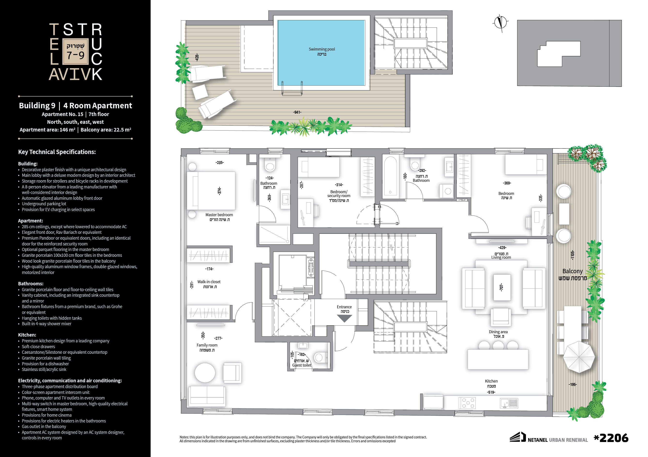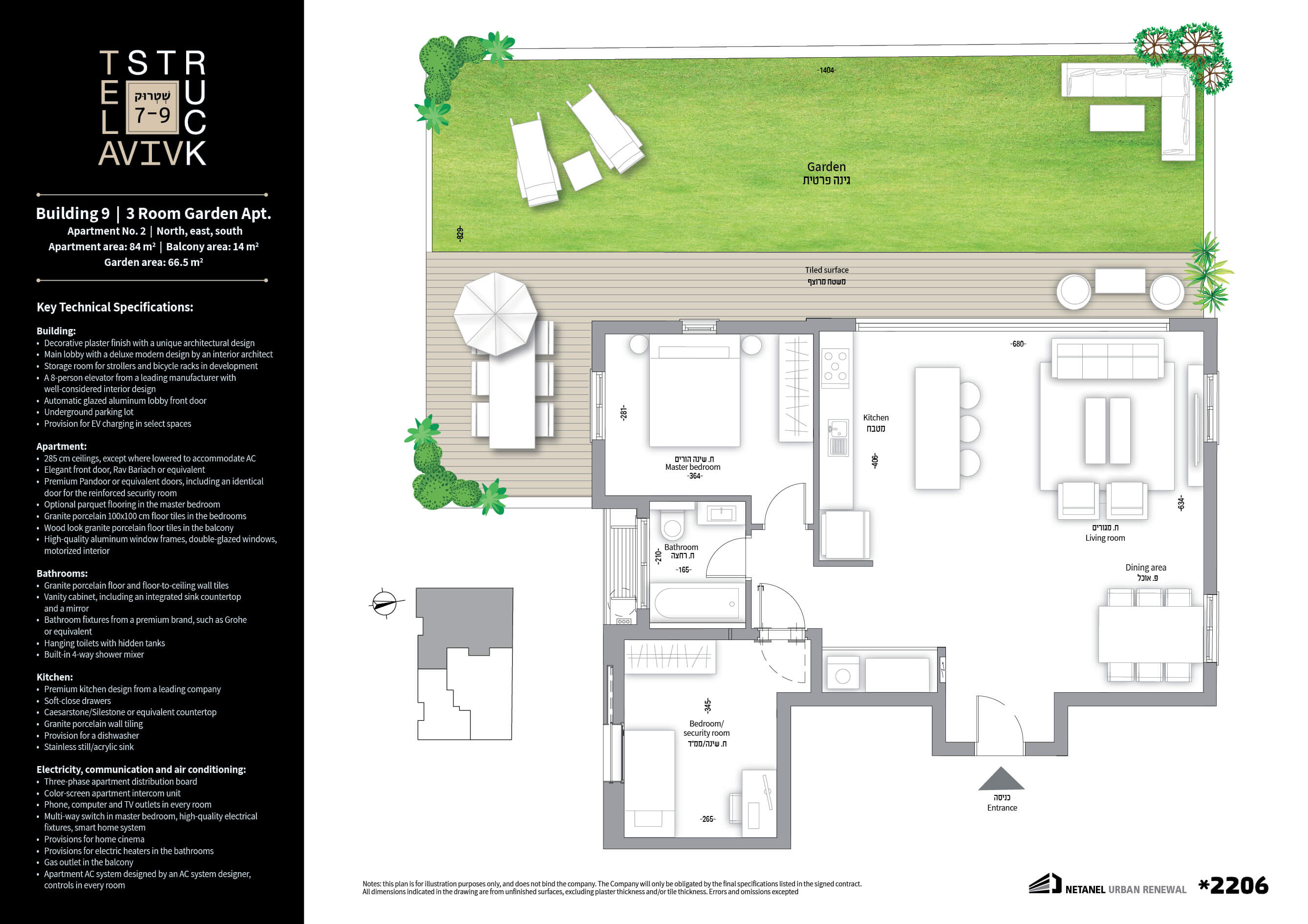 The project is in an excellent location. On the one hand it is in a pleasant, clean and quiet street and on the other hand it is close to all the cultural abundance of the city. Within walking distance from the project are Masrik Square and Rabin Square, and to the west, the nearby Ibn Gvirol Street with plenty of restaurants and cafes and of course the "City Garden" with a variety of shops, banks and the Einav Cultural Center. Within a short walking distance you will find the Opera House, the Chamber Theater and the Tel Aviv Museum of Art, the State Square with its many shops as well as the Ichilov Hospital and other public facilities.